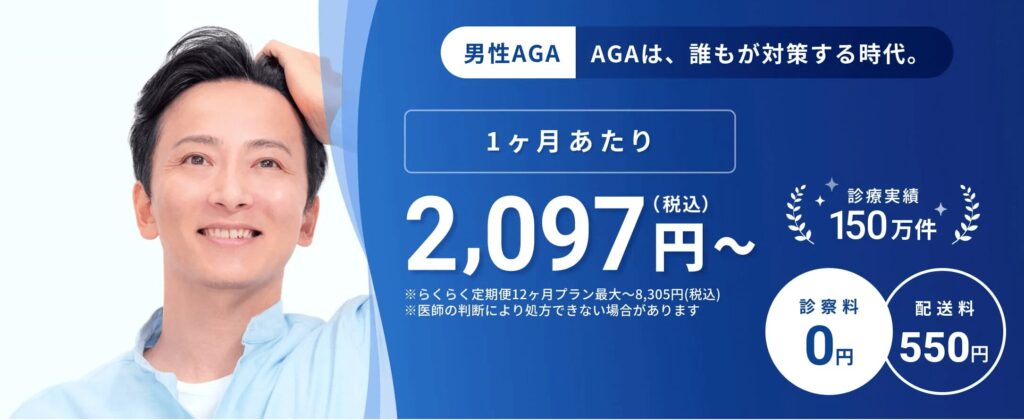 また、初診料・診察料は無料で、副作用により継続不可と診断された場合の全額返金保証制度もあるため、AGA治療が初めての方でも安心して利用できます。