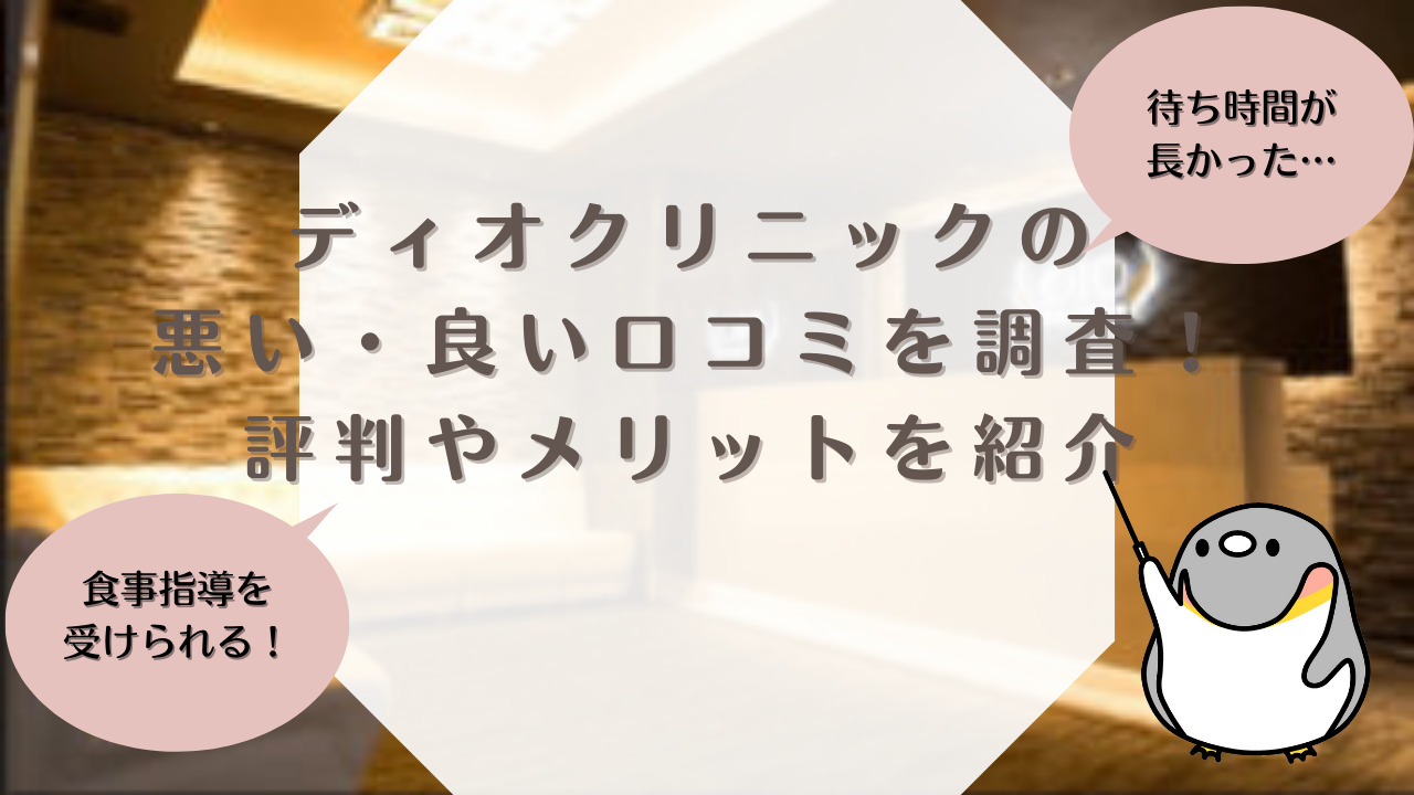 ディオクリニックの悪い口コミ・評判の真相を追及し、ディオクリニックのリアルな口コミ・評判をまとめました。また、メリットや…
