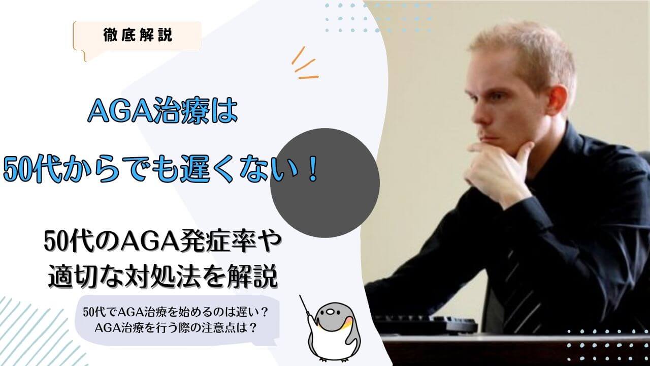 AGA50代AGA治療は50代からでも遅くない理由を解説します。おすすめのクリニックも紹介するため、参考にしてください。…