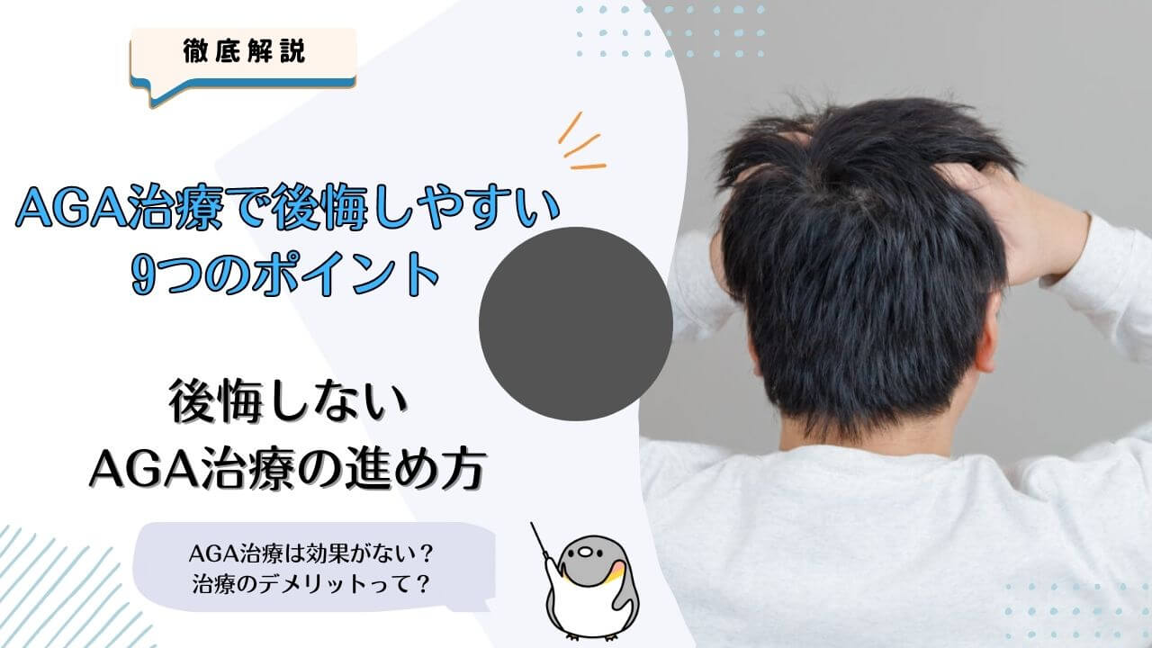 AGA治療には、思うように効果が出なかったり副作用が辛かったりと、後悔しやすいポイントがあります。安心して治療を開始する…
