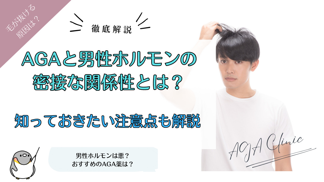 抜け毛に関係するAGAと男性ホルモンについて解説しています。特に注意点を知らないと効果は得られない可能性があるため、ご覧…