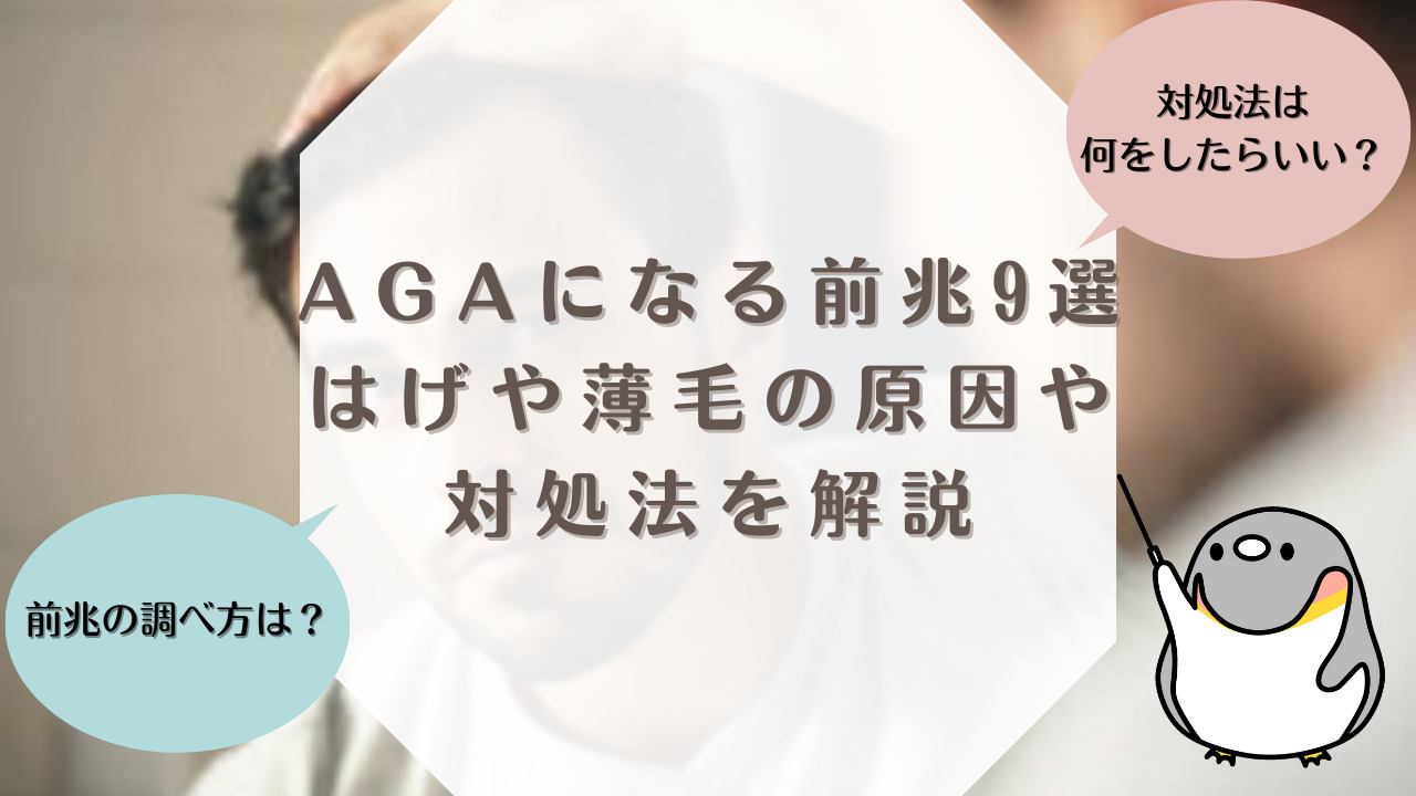 AGAの前兆として注意したいのが、毛根や髪質の状態、生え際や頭頂部の薄さなど。AGAは進行形ため、早めの治療が大切です。…