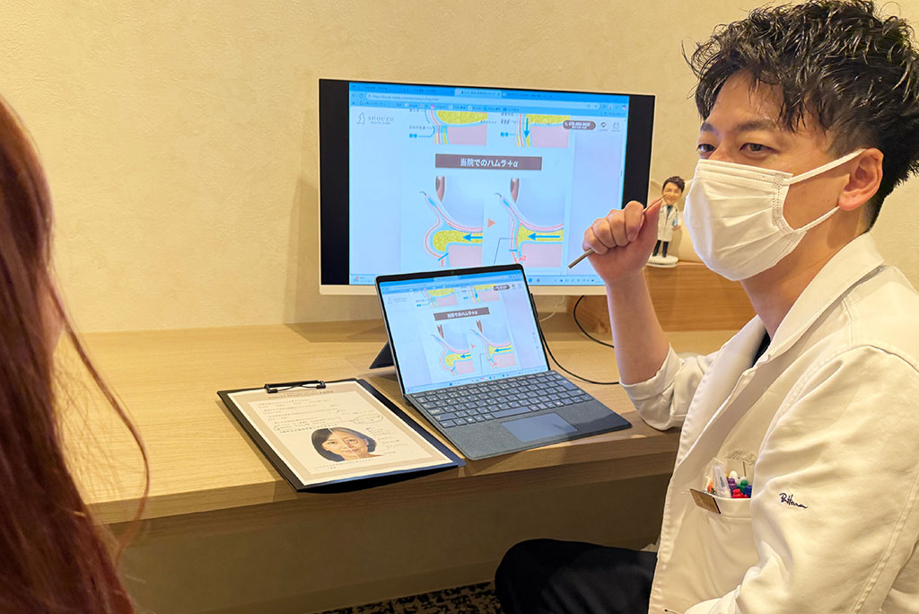 生水幹憲先生まずは、カウンセリングで、私自身が、お客様のお悩みやご希望を、時間をかけてじっくりと伺います。その上で、クマの状態を正確に診断し、考えられる全ての選択肢と、それぞれのメリット・デメリットを、包み隠さずご説明します。