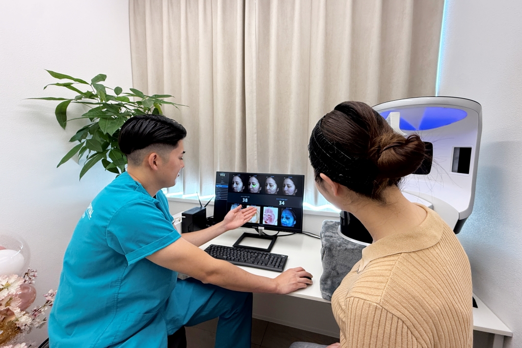菅 諒馬先生シミ治療は最初の「診断」が、何よりも重要です。当院では、「VISIA(ビジア)」という肌診断機を用いて、患者さまのシミが、老人性色素斑なのか、肝斑なのか、ADM(後天性真皮メラノサイトーシス)なのかを、正確に見極めます。
