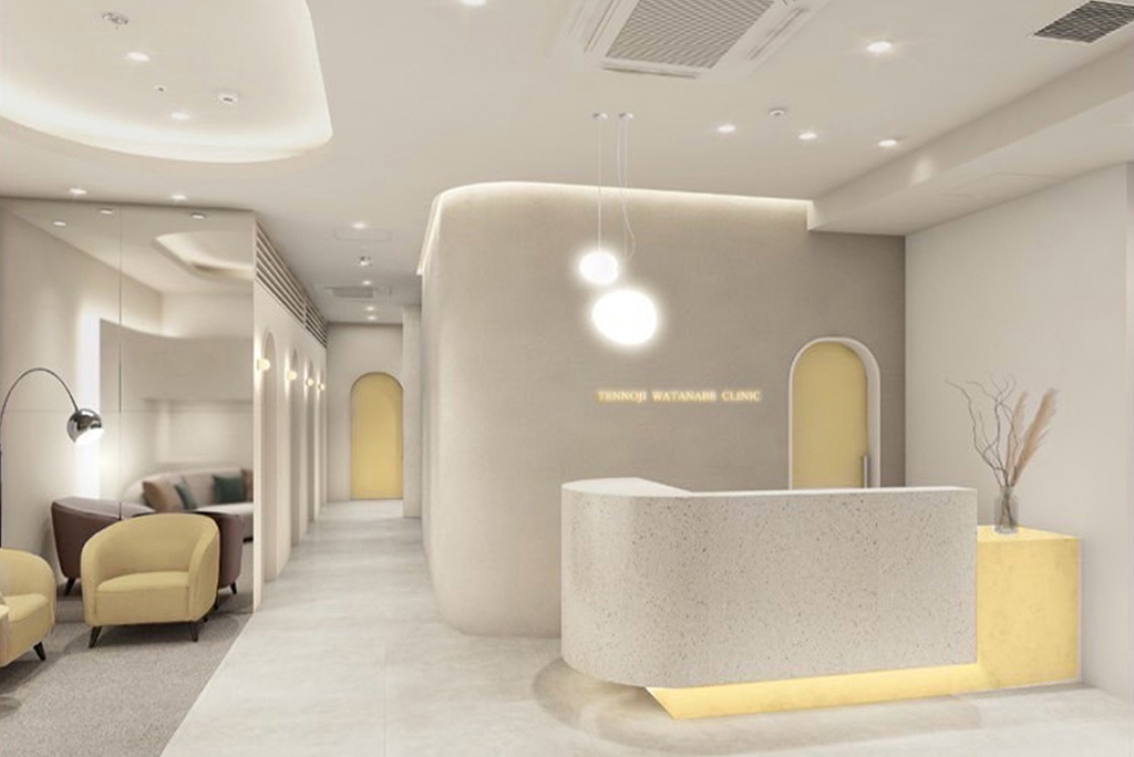渡邉正士先生当クリニックは「私の心が満ちていく。」というコンセプトを掲げ、見た目の美しさだけでなく、心の安らぎも提供できるクリニックを目指しています。その想いを形にするため、「ムーンビューティー(Moon Beauty)」という名前に合わせ、内装は「月」をイメージしたモダンで落ち着いた雰囲気に統一し、アクセントとして黄色を取り入れています。こうした空間づくりに加えて、患者さまが安心して施術を受け、気持ちの面でも満たされるよう、ホスピタリティにも特に力を入れています。