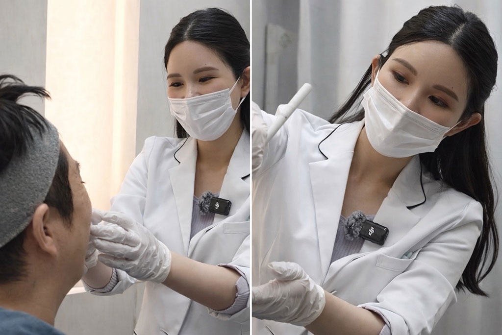 伊藤李奈先生まず診察で、筋肉の緊張状態や解剖学的な特徴をしっかりと拝見します。患者さまのご要望通りに打つのではなく、プロの視点からその方に最適な打ち方をご提案することが大切だと考えています。実際の施術では、特に初めての方の場合、「まずは少なめの量から開始する」という方法をとっています。一度に多く打ちすぎてしまうと、表情が重くなったり人相が変わってしまったりするリスクがあるからです。そして、施術から2週間後に再度ご来院いただき、状態を確認しながら「タッチアップ(追加調整)」を行います。